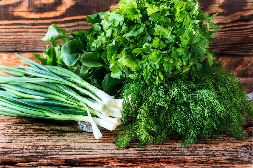 В продаже: лук, укроп, петрушка, кинза, шпинат, щавель,
